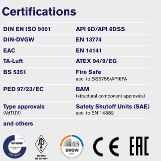 Böhmer ball valves with two- or three pieces split body fulfil the requirements of the most common national and international standards.