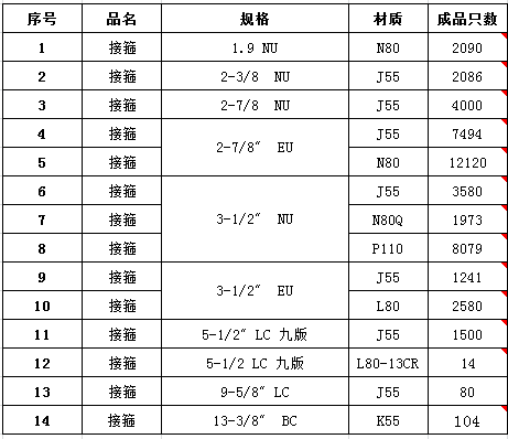 L80, and P110 oil casings, couplings, short joints, and conversion joints.